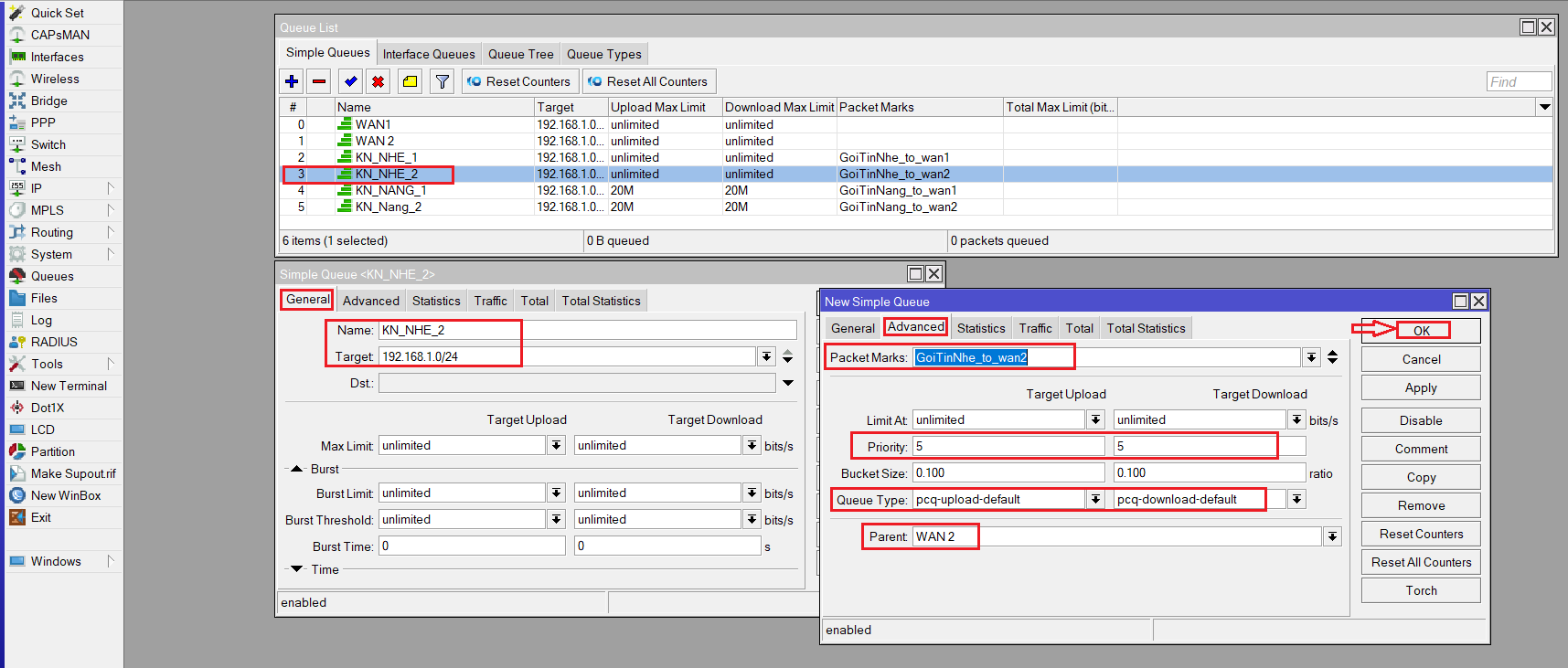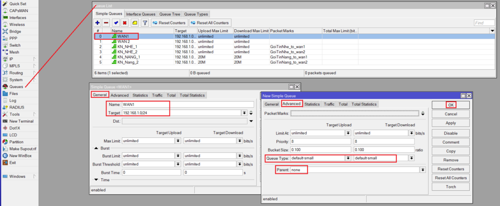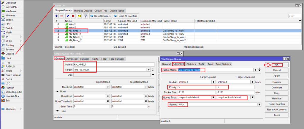 Simple Queue để can thiệp vào phân bổ băng thông và ưu tiên cho gói tin nhẹ: