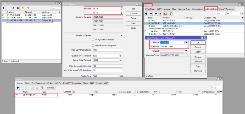 Đã thiết lập internet Và có BridgeLAN ở dải: 192.168.1.1