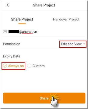 - Account: điền Email người nhận chia sẻ
