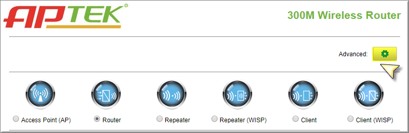 Để thực hiện được chức năng này, Thiết bị Wi-Fi APTEK phải hoạt động ở mode router (mode WAN). Tức là kết nối trực tiếp internet từ nhà mạng hoặc từ router nhà mạng kết nối vào cổng WAN APTEK và APTEK phát Wi-Fi khác lớp mạng router chính.