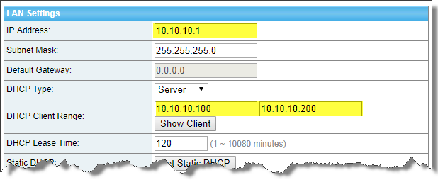 Vào Network >> LAN Settings