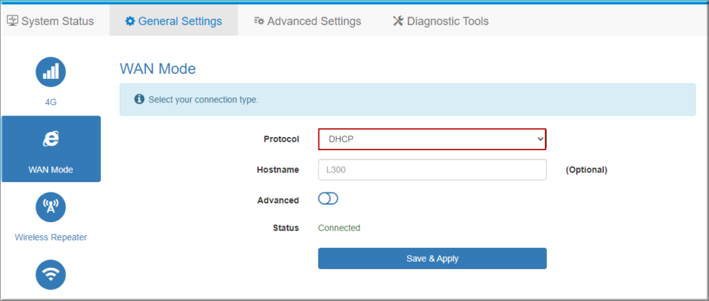 APTEK L300 – Cấu hình 3G/4G backup internet trực tiếp
