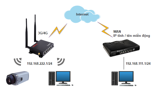 Công ty bạn có một công trình mới ,bạn đang đau đầu nơi đó không thể kéo được internet. Bạn cần quan sát từ xa camera từ với mục đích chống trộm vật liệu, quan sát tiến độ công việc từ xa, cầ chia sẻ mạng dữ liệu, in ấn ở công ty. Bạn đang đau đầu nhưng vẫn chưa tìm được phương án. Giải pháp kết hợp VPN giữa APTEK L300 và DrayTeK sẽ giúp bạn giải quyết vấn đề này.