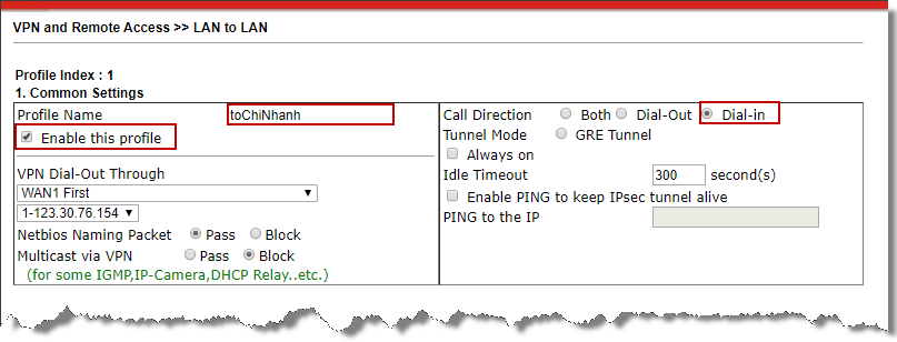 2. Cấu hình VPN trên router DrayTek - Site Văn Phòng (Dial- in)