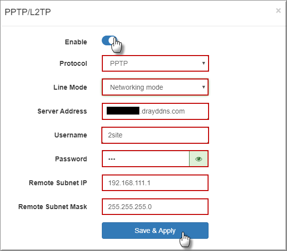 - Username/ Password: điền Username/ Password VPN đã khai báo trên DrayTek