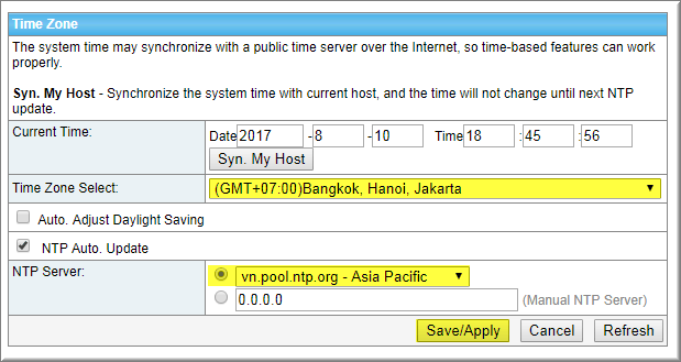 - Time Zone Select: Chọn múi giờ Việt Nam (GMT +7)