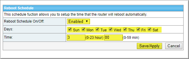 - Day: Chọn ngày sẽ auto reboot (Chọn hết tất cả nếu muốn reboot mỗi ngày)