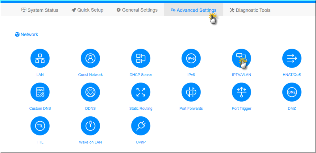 - Chọn thuộc tính là “IPTV” đối với port nối với SetopBox xem IPTV (ví dụ Port 4 như hình)