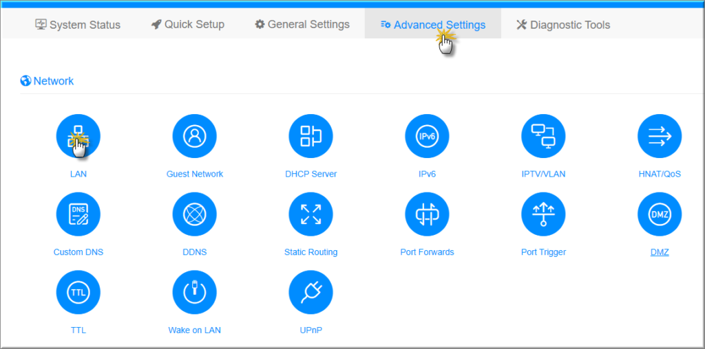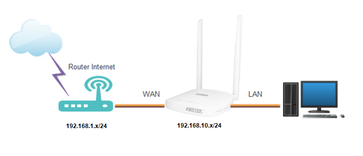 Lớp mạng LAN mặc định của APTEK AR1200 là 192.168.10.1/24. Vì vậy