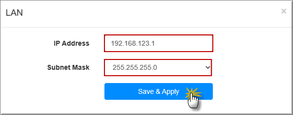 • IP Address: điền IP cần đổi (ví dụ 192.168.123.1)