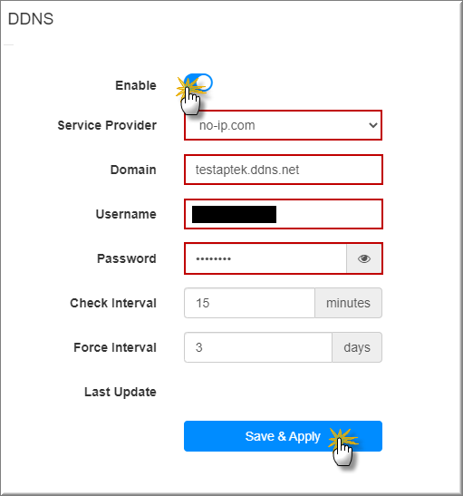 • Username/ Password: điền tài khoản đăng nhập No-IP