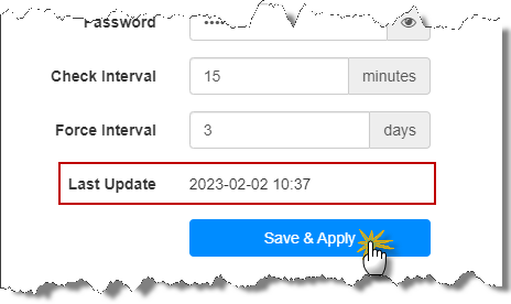 Vào Advanced Settings >> DDNS. Kiểm tra thời gian cập nhật lần cuối cùng là thời gian vừa mới cấu hình