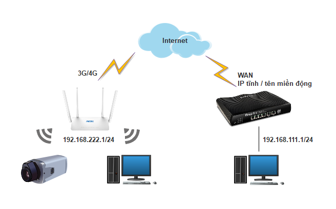 Công ty bạn có một công trình mới ,bạn đang đau đầu nơi đó không thể kéo được internet. Bạn cần quan sát từ xa camera từ với mục đích chống trộm vật liệu, quan sát tiến độ công việc từ xa, cầ chia sẻ mạng dữ liệu, in ấn ở công ty. Bạn đang đau đầu nhưng vẫn chưa tìm được phương án. Giải pháp kết hợp VPN giữa APTEK AR1200 và DrayTeK sẽ giúp bạn giải quyết vấn đề này.