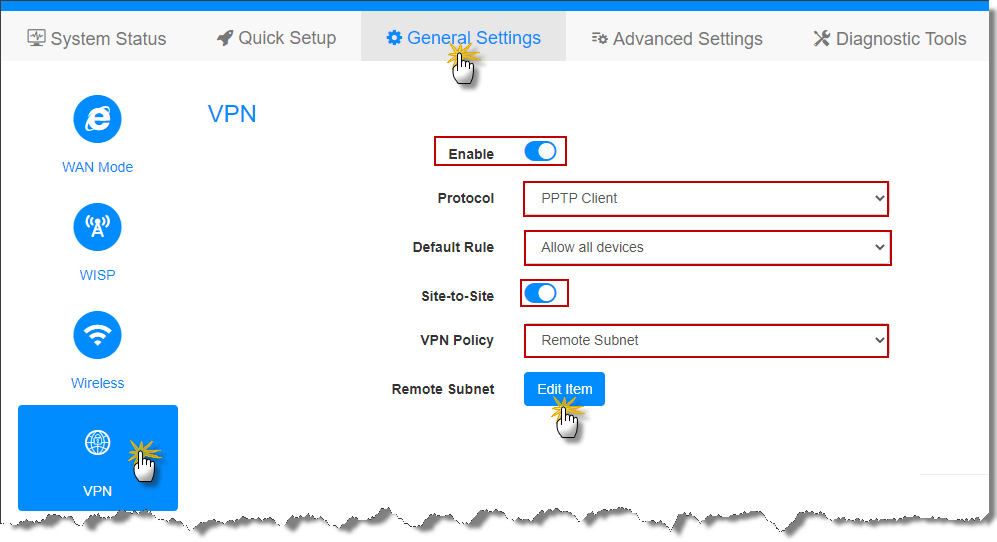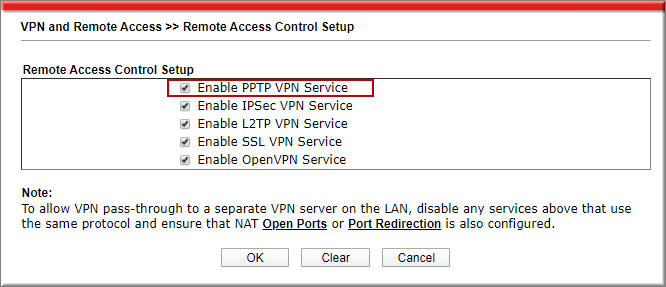 1. Kích hoạt dịch vụ VPN PPTP trên DrayTek DrayOS