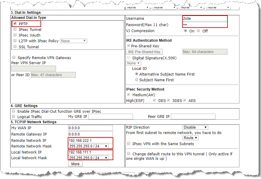- IP addess: điền IP DrayTek đầu xa (ví dụ 192.168.111.1)