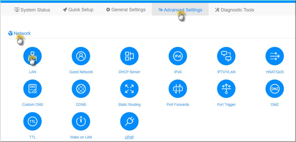 Đổi lớp mạng LAN AR1200 thành lớp mạng mong muốn, ví dụ (192.168.222.1/24)