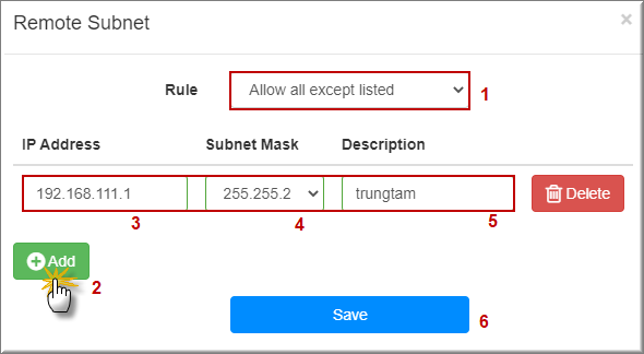 - Subnet mask: chọn subnet mask có sẵn hoặc custom để điền subnet mask lớp mạng DrayTek đầu xa (ví dụ /24 là 255.255.255.0)