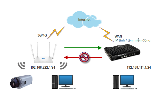 Công ty bạn có một công trình mới ,bạn đang đau đầu nơi đó không thể kéo được internet. Bạn cần quan sát từ xa camera từ với mục đích chống trộm vật liệu, quan sát tiến độ công việc từ xa, cầ chia sẻ mạng dữ liệu, in ấn ở công ty. Bạn đang đau đầu nhưng vẫn chưa tìm được phương án. Giải pháp kết hợp VPN giữa APTEK AR1200 và DrayTeK sẽ giúp bạn giải quyết vấn đề này.