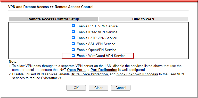 1. Kích hoạt dịch vụ Wireguard VPN trên DrayTek DrayOS