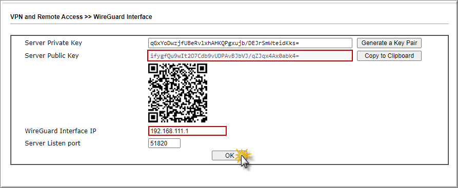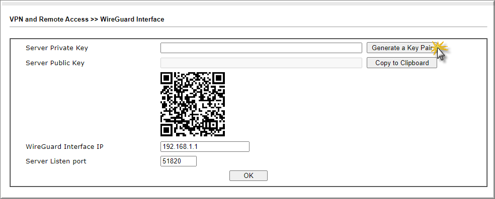 Nhấn Generate a Key Pair để tạo Server Private Key và Server Public Key. (Lưu ý, chỉ thực hiện một lần, nếu thực hiện Generate lại sau khi tạo profile VPN thì phải cấu hình lại từ đầu)