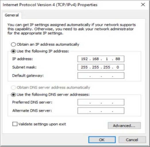 2.  Đặt IP tĩnh trên card mạng LAN máy tính: 192.168.1.88/24 >> nối dây mạng từ máy tính vào port LAN chính giữa thiết bị APTEK