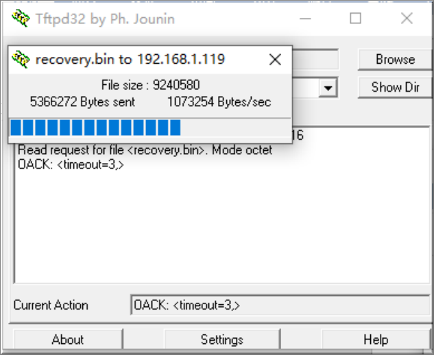 8. Khi đèn "SYS","USB", "WPS" đều sáng nhấp nháy, hoặc TFTP bắt đầu tải file.