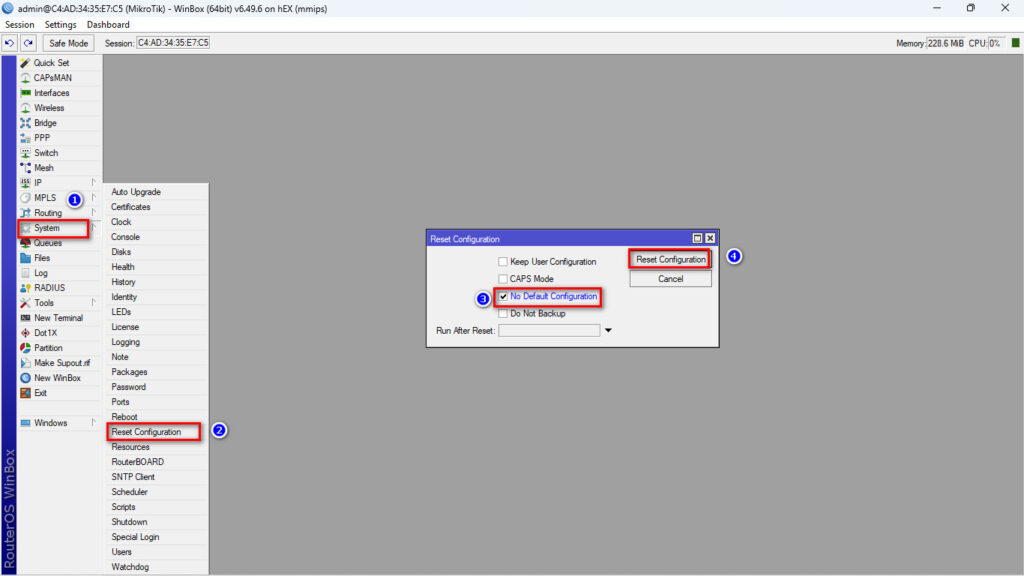 • Lưu ý, trước khi cấu hình thiết bị, các bạn nên reset thiết bị về cấu hình mặc định của NSX để tránh các lỗi trong quá trình thực hiện.