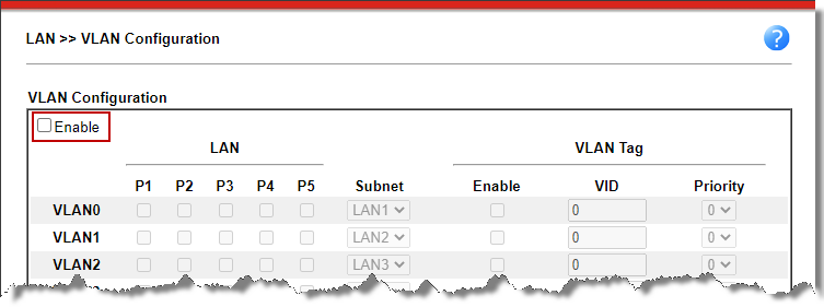 - Vào LAN >> VLAN Configuration: chọn Enable