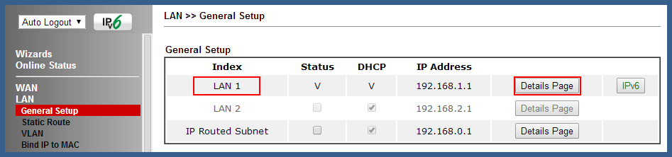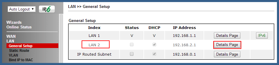 - Chọn Details Page của LAN hoặc IP Routed Subnet nào trùng lớp mạng với IP bạn muốn đặt cho Vigor. Trường hợp này là LAN 2