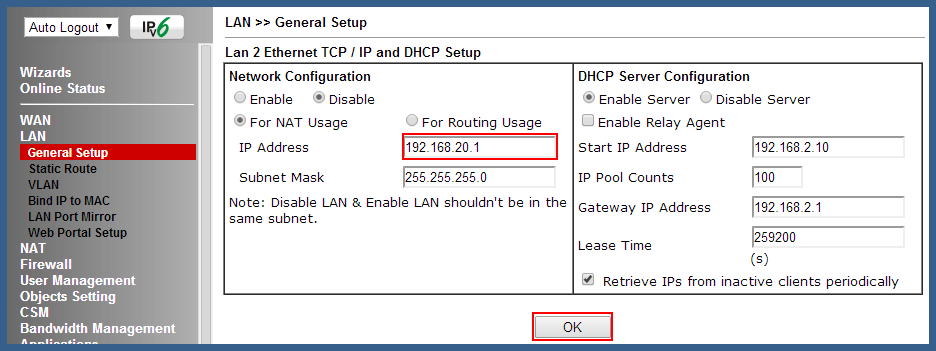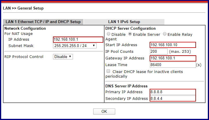 - IP Address: Địa chỉ IP LAN của Router Vigor – Bạn có thể thay đổi cho phù hợp với mạng LAN hiện tại là 192.168.100.1