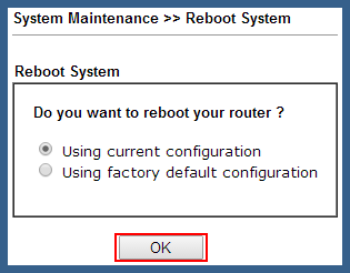 Sẽ hiện ra thông báo yêu cầu khởi động lại Router Vigor >> Nhấn OK