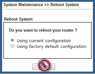 + Nhấn OK >> Sẽ hiện ra thông báo yêu cầu khởi động lại Vigor . BỎ QUA THÔNG BÁO NÀY và làm tiếp các bước bên dưới