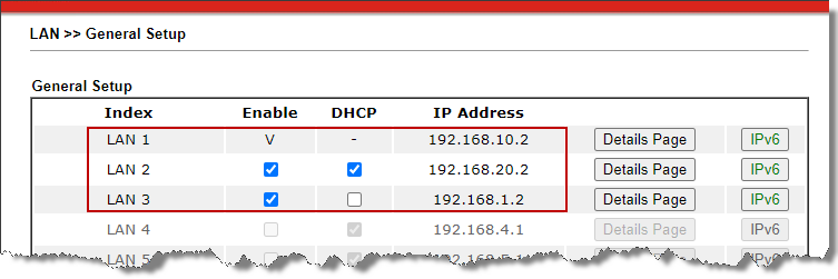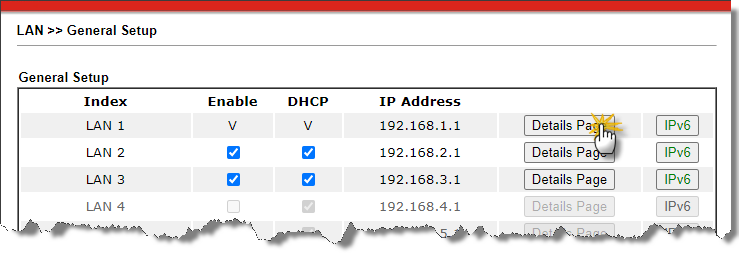 Tại LAN2, nhấn Details Page, cấu hình lớp mạng LAN2