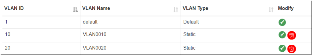 - Thực hiện tương tự cho các VLAN20, Ta có danh sách các VLAN như sau
