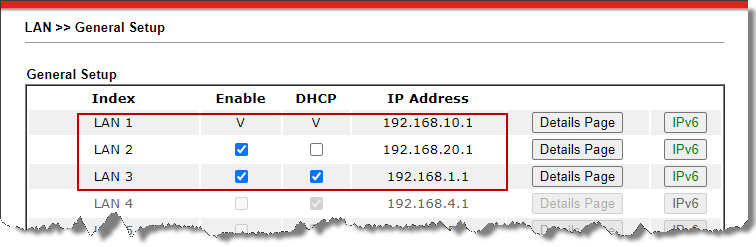 Tại LAN3, nhấn nhấn Details Page, cấu hình lớp mạng LAN3 quản lý