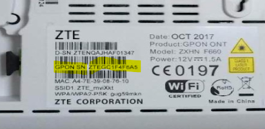 Bước 3: Tìm GPON SN bên dưới thiết bị nhà mạng đang sử dụng (tham khảo hình dưới, hoặc có thể xem trong giao diện web của thiết bị cũ nếu biết cách xem)