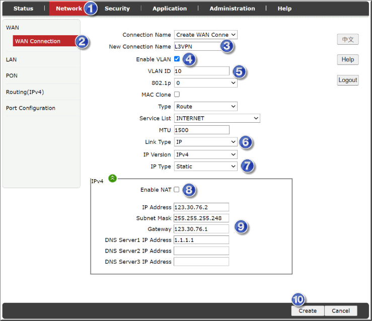- New Connection Name: Đặt tên kết nối WAN (ví dụ L3VPN)