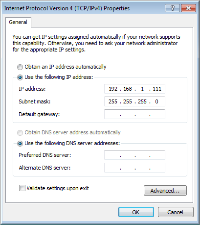 - Đặt IP tĩnh cho card mạng LAN của máy tính