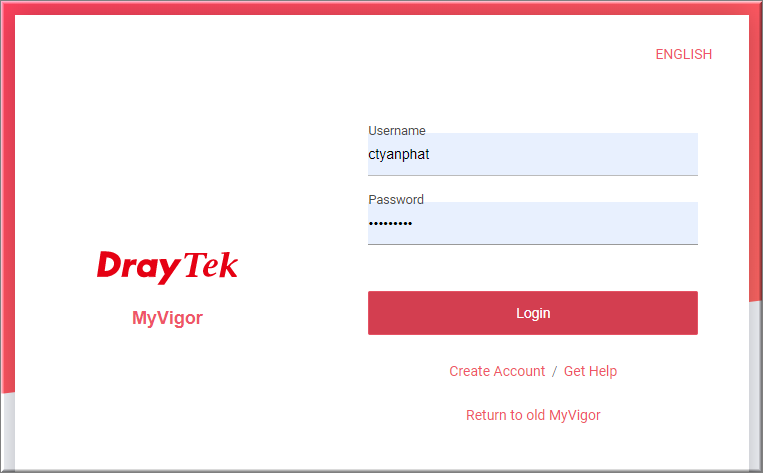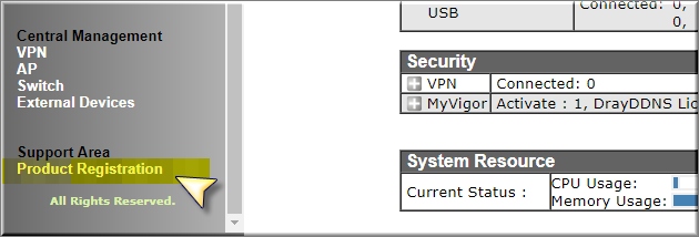 Đăng nhập vào thiết bị >> chọn Product Registration, đăng nhập lại tài khoản MyVigor