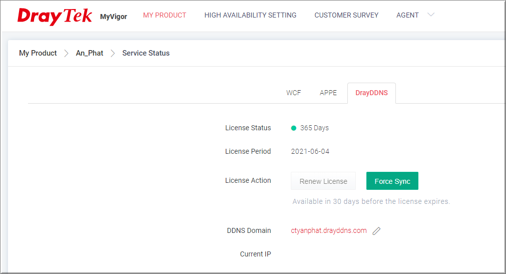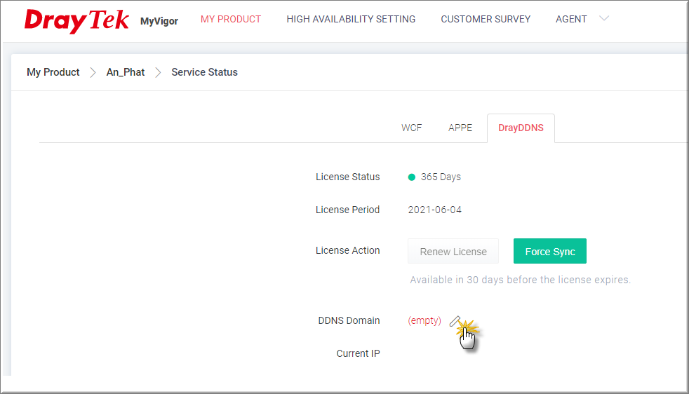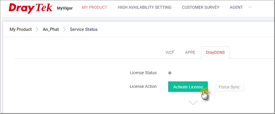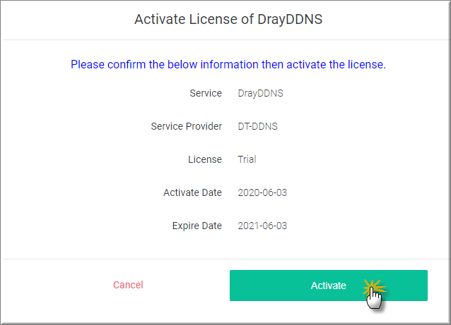 1. 1 Chọn dịch vụ DrayDDNS >> nhấn Active License