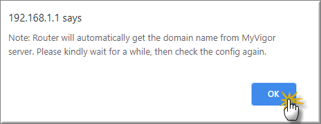Hiện thông báo Router sẽ tự động cập nhật tên miền từ MyVigor>> nhấn OK