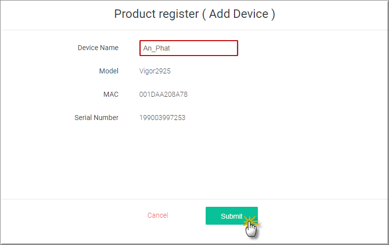 Điền tên thiết bị tại Device Name >> nhấn Submit