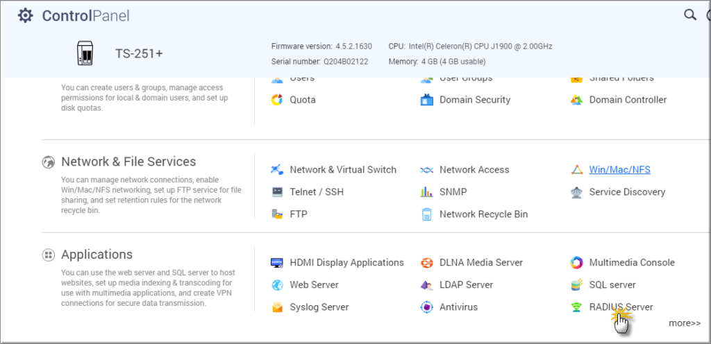 - Primary Server: Điền IP RADIUS server (IP ổ NAS)