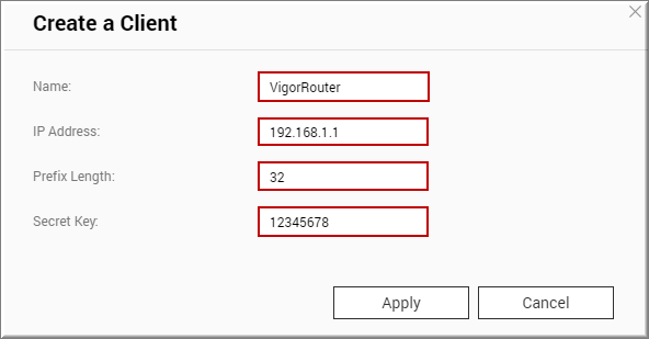 - IP Address: Điền IP Client (IP Vigor Router hoặc VigorAP)