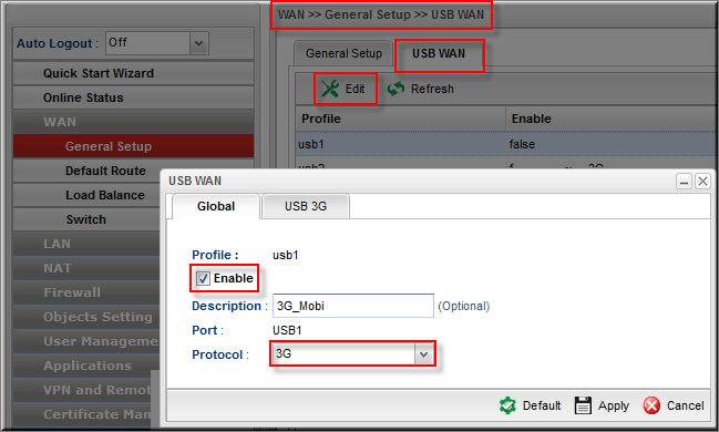 Cấu hình internet 3G/4G trên Vigor3900 | Vigor2960 | Vigor300B