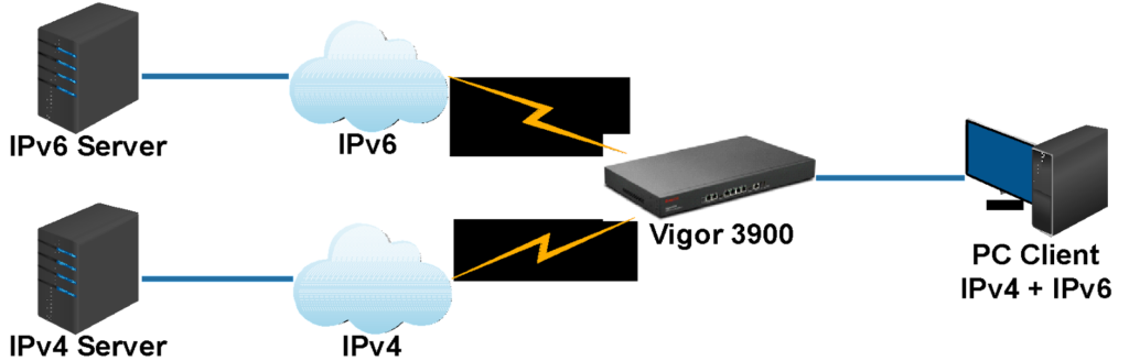 • Với thiết bị Vigor của DrayTek, bạn có thể kết hợp 2 hệ thống IPv4 và IPv6 chạy đồng thời.