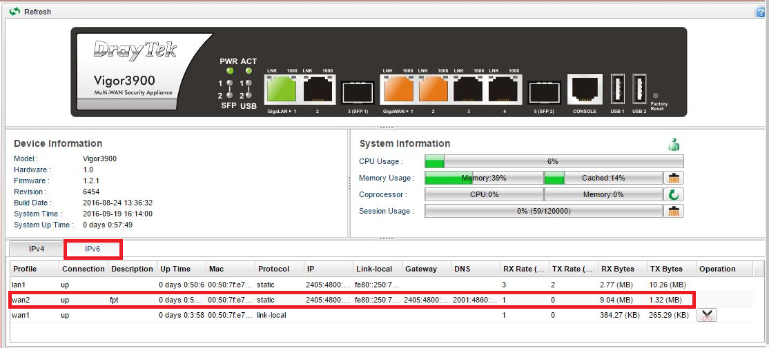 Vigor2960 / 3900 / 300B – Hướng dẫn cấu hình IPv6 (Dual Stack / Static)