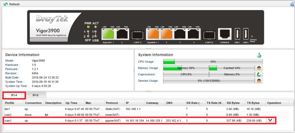 • Bạn chọn menu Online Status >> Chọn thẻ IPv4 hoặc IPv6 để kiểm tra đường truyền tương ứng.