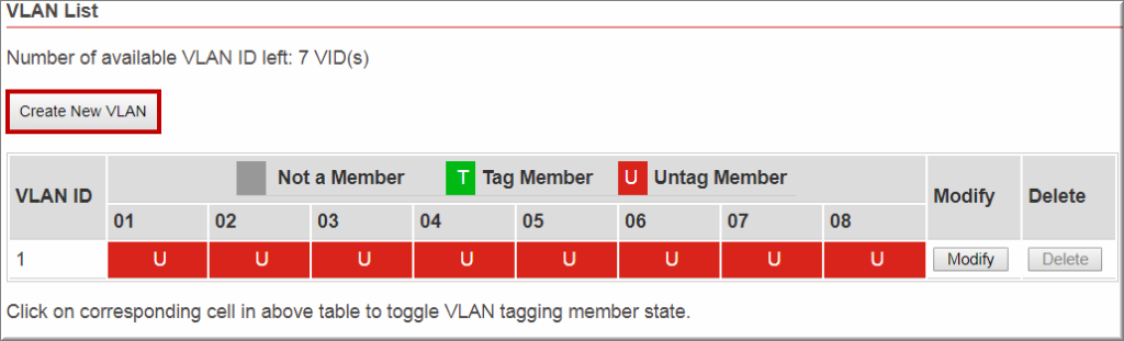 Vào VLAN, nhấn “Create New VLAN” để tạo VLAN mới