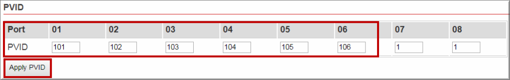• Điền PVID của VLAN tương ứng từng port (1- 101; 2- 102; 3-103; 4-201; 5-202; 6- 203)